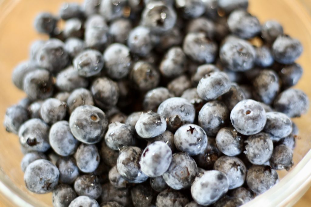 Toss Blueberries with 1/4 cup flour. This helps you to not get one giant blueberry clump in your muffins so that you can easily mix them.